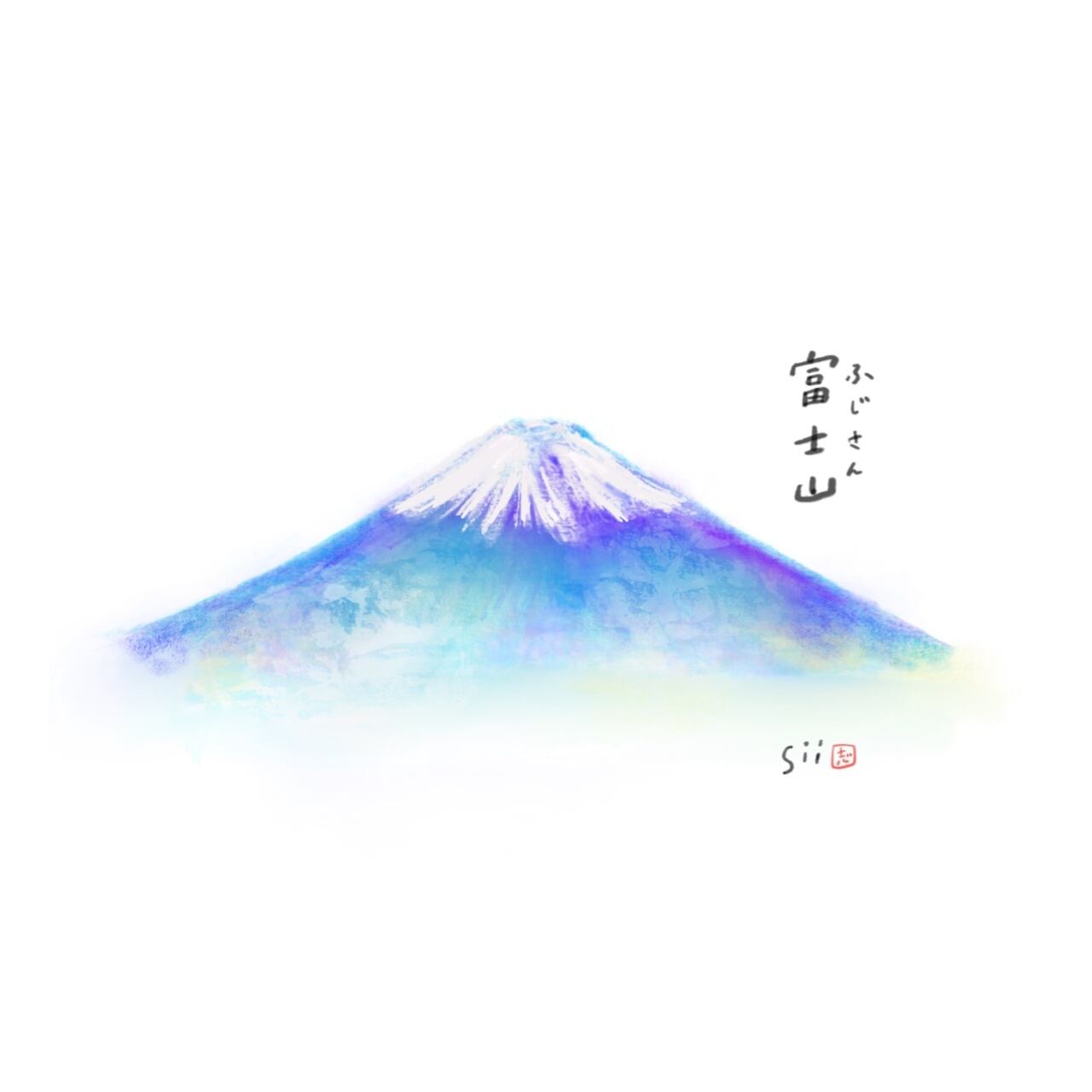 描いています。水彩画のような富士山です。