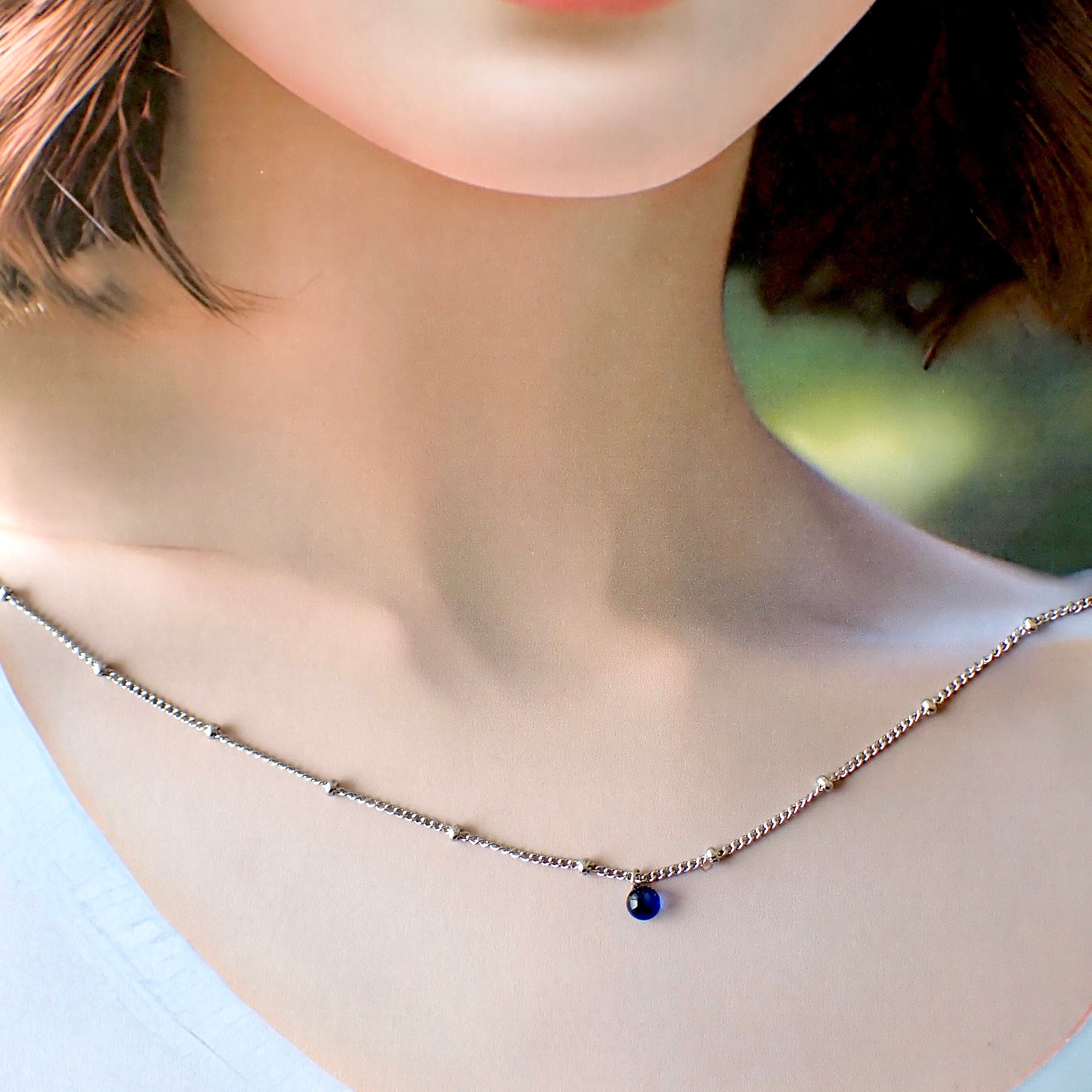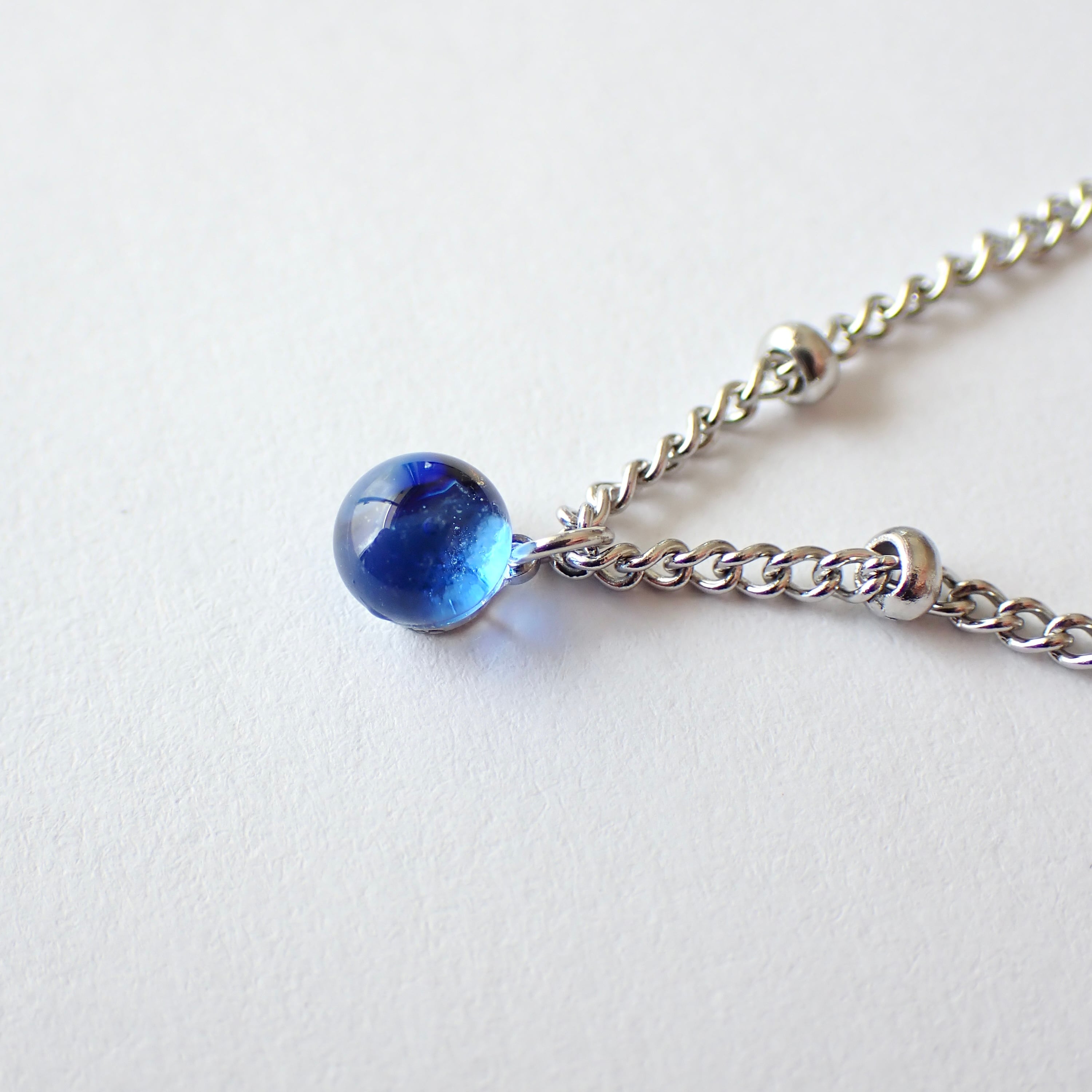 小粒がかわいい琉球ガラスの一粒ネックレス。