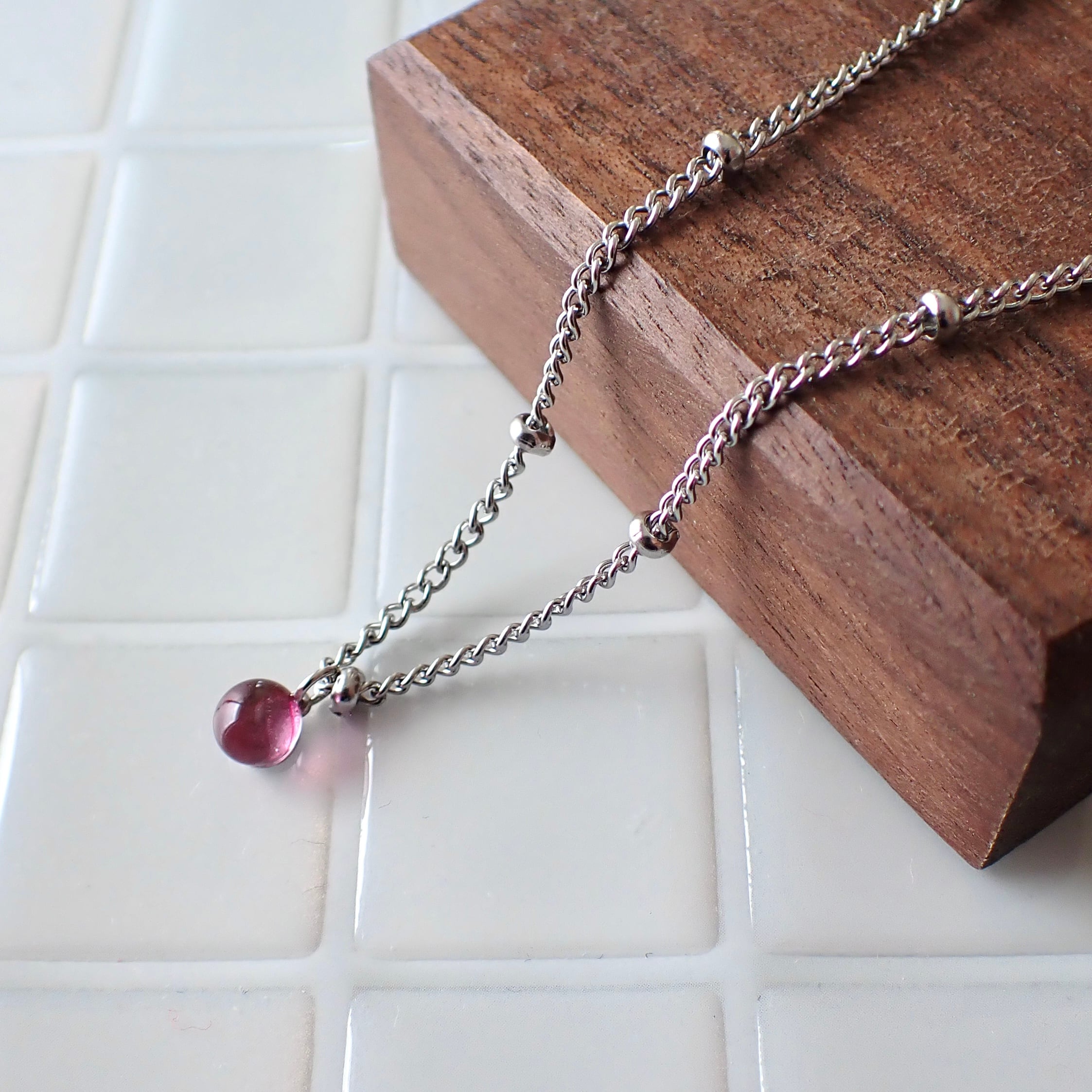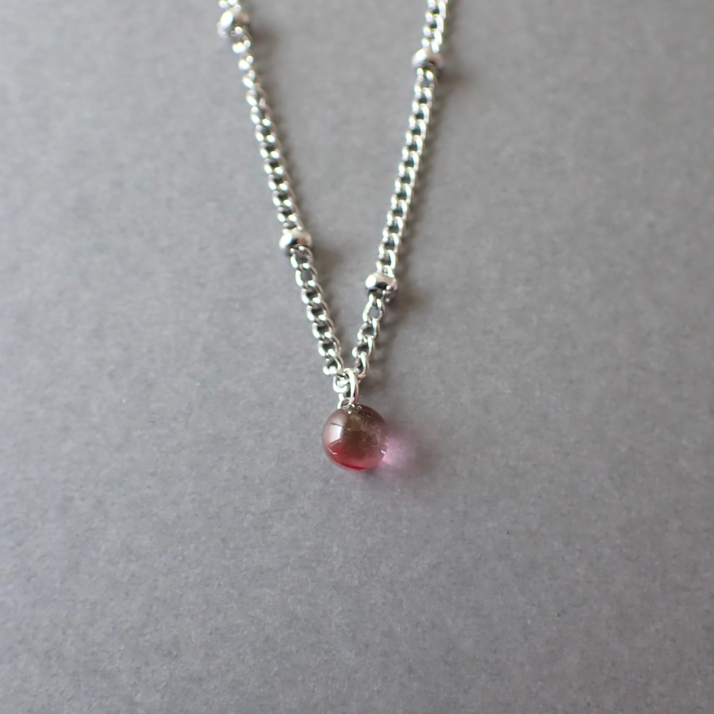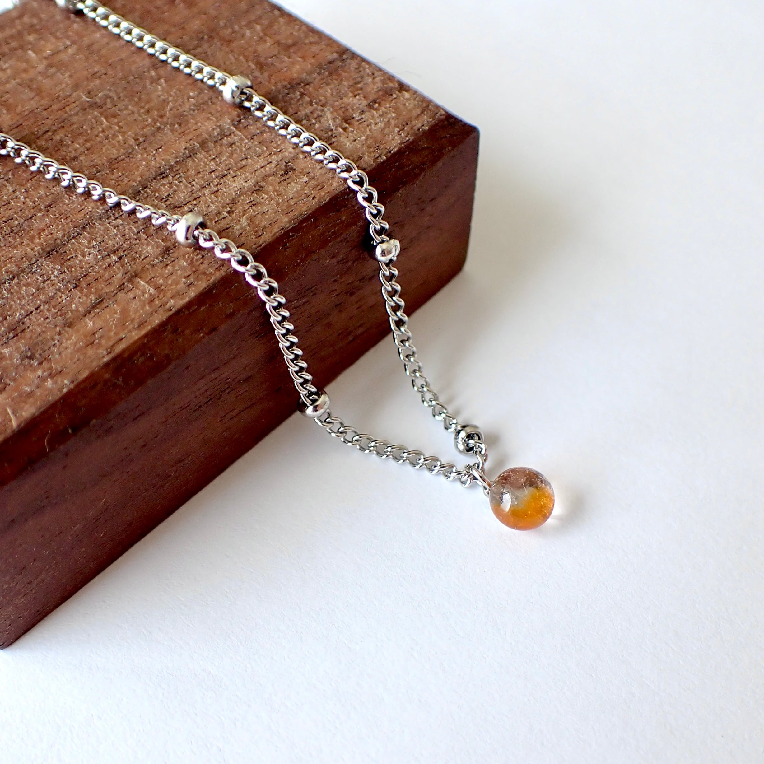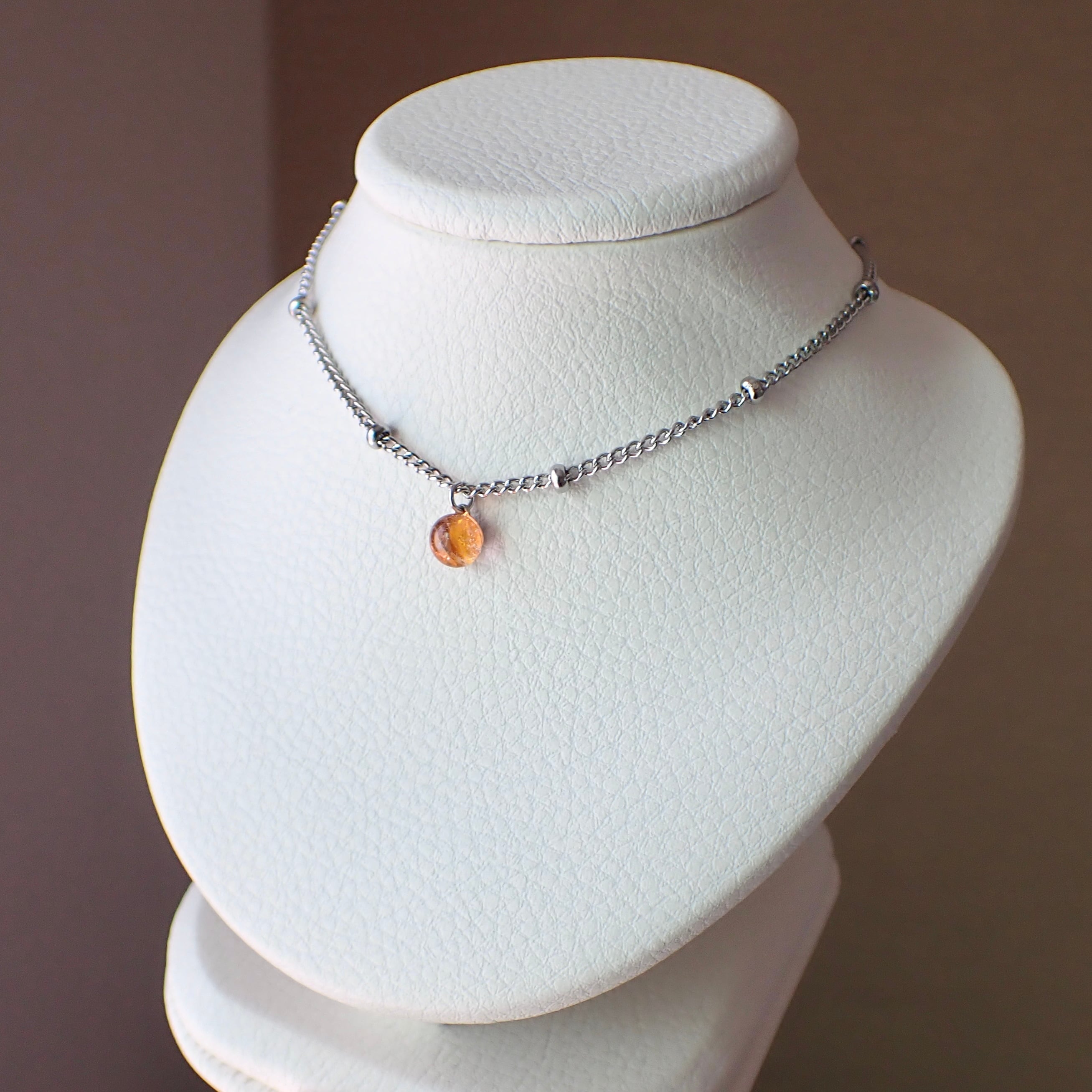 小粒がかわいい琉球ガラスの一粒ネックレス。