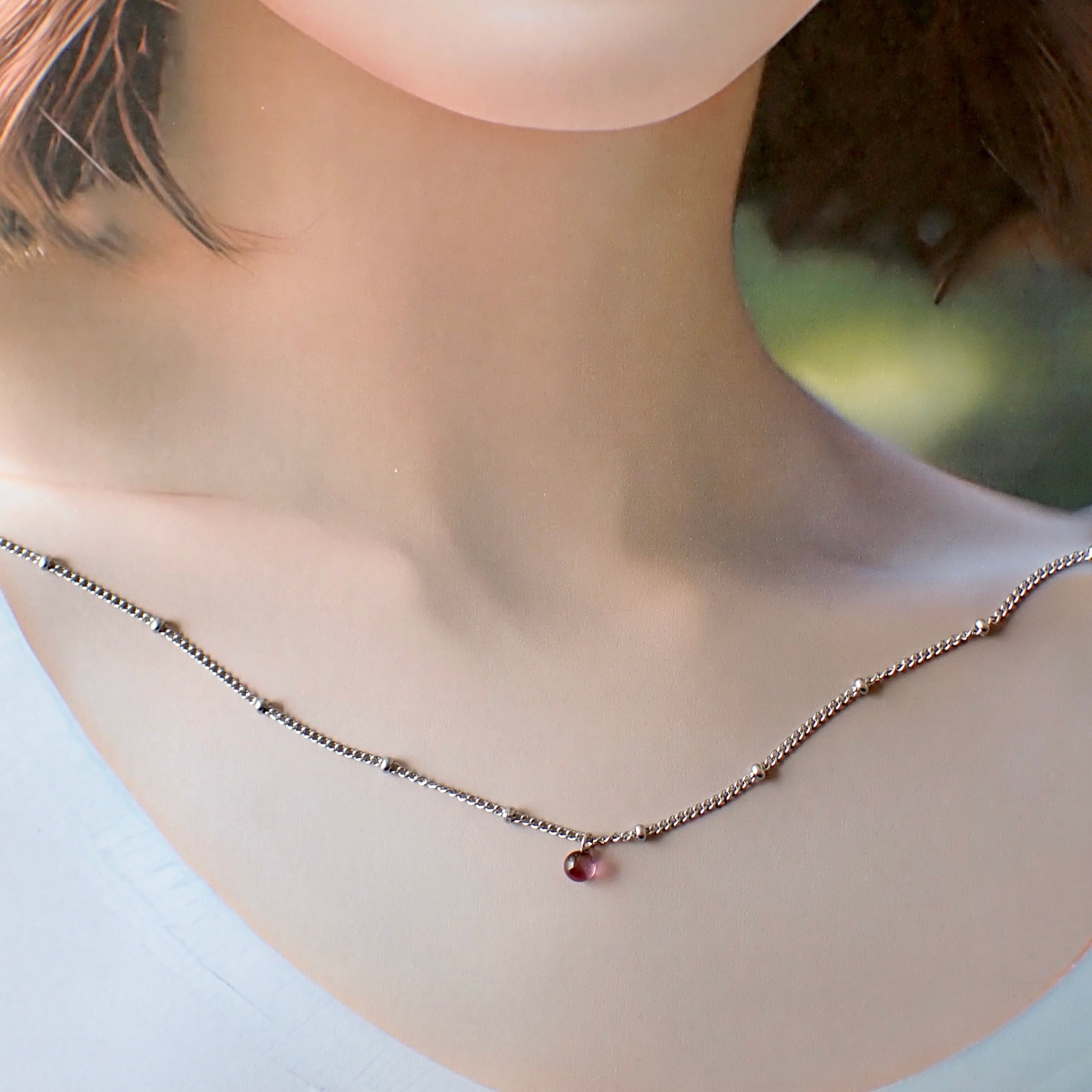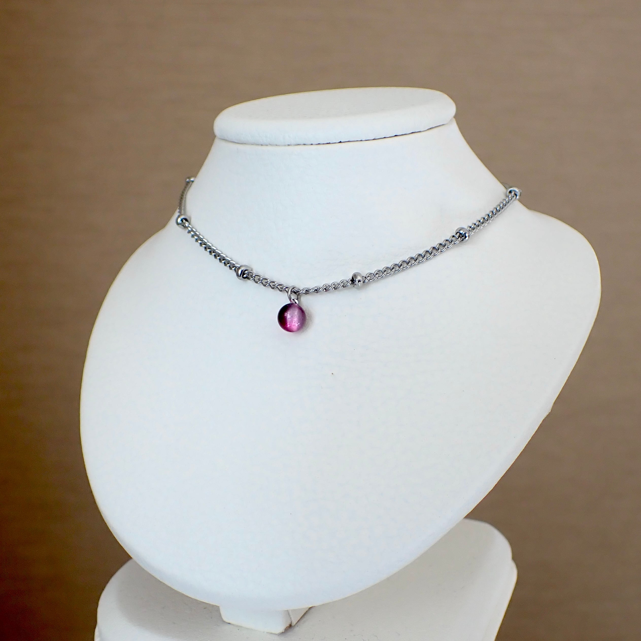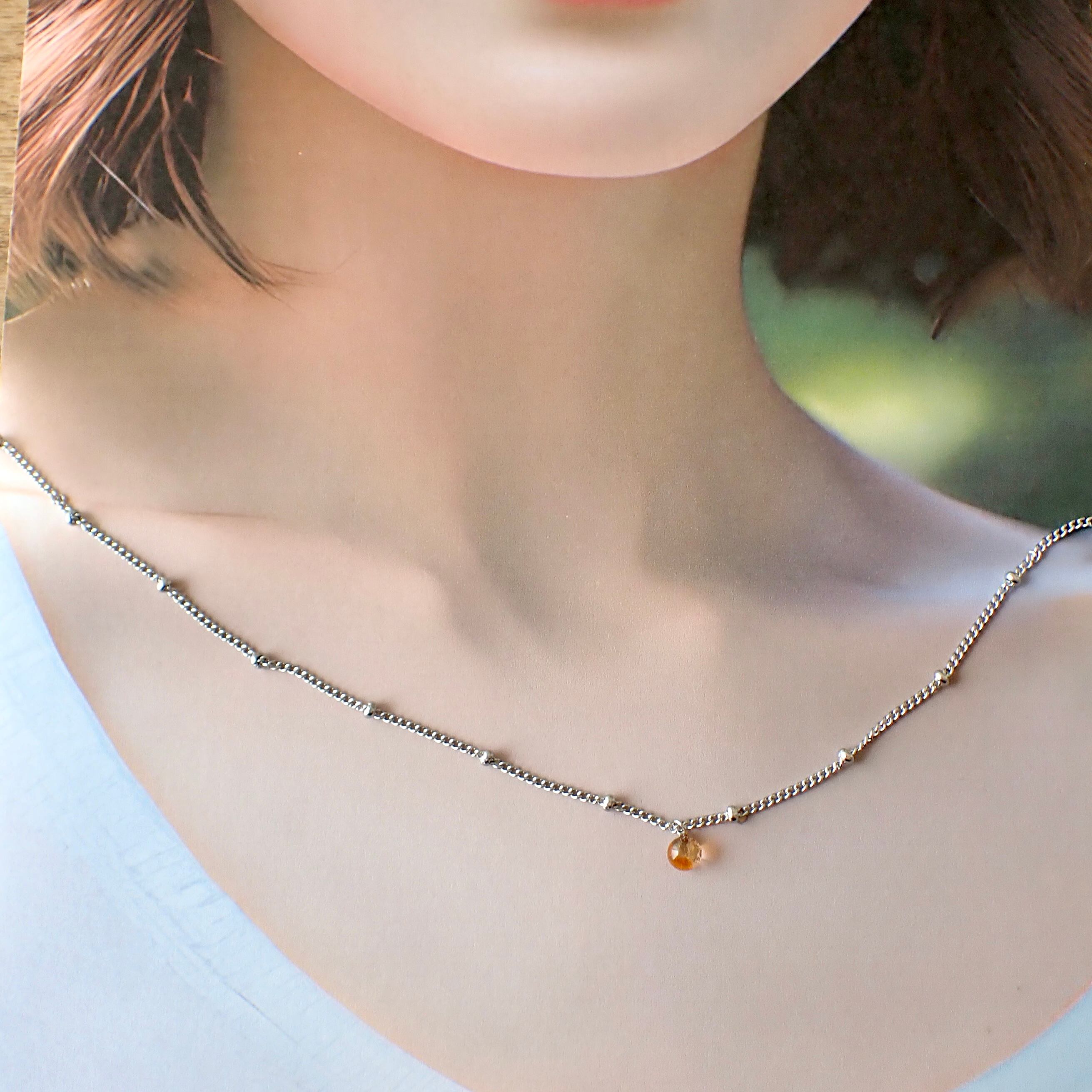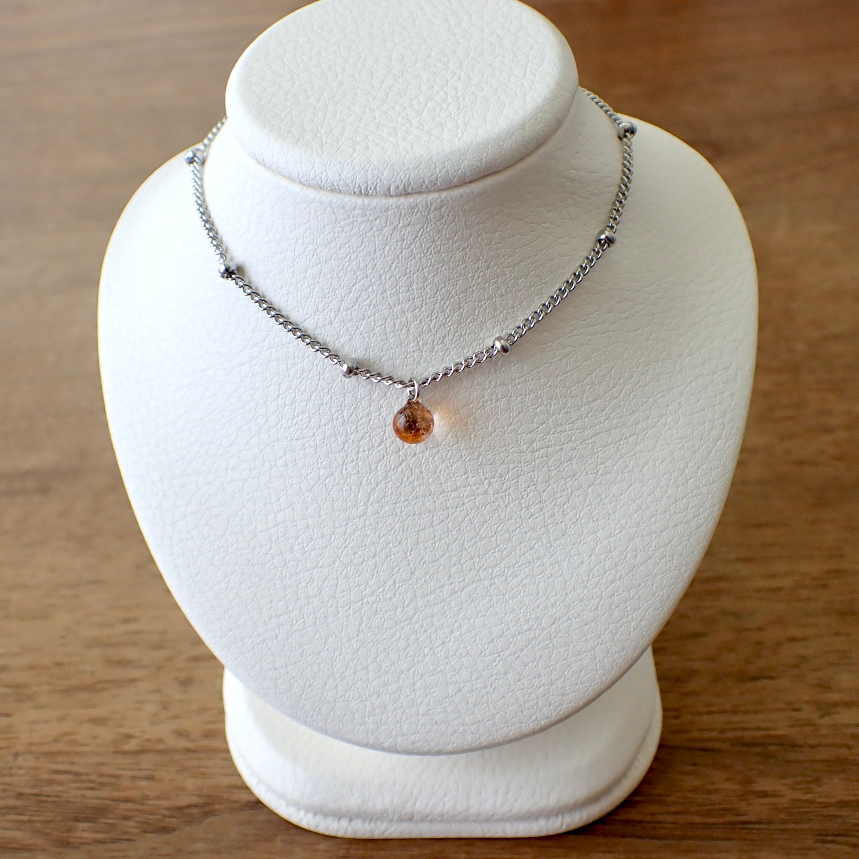 小粒がかわいい琉球ガラスの一粒ネックレス。